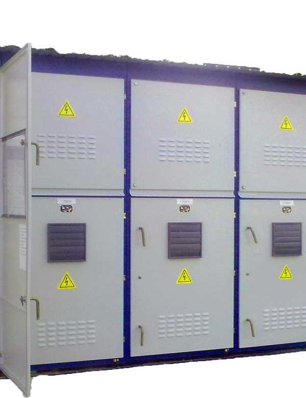 Application Installations of types SCB , ACB are intended for individual or group compensation in high-voltage networks. Design Compensation units type SCB are designed in sheet steel cabinets or in steel frames - according to the customer's request. The standard version of the units includes high-voltage capacitors ENERLUX (three-phase or single-phase capacitors connected in a star, if necessary, a double star), a set of fuse holders, with appropriate fuses. Upon request, the installation can be supplemented with an air switching reactor to reduce transients, as well as, if necessary, other protective and measuring elements (balance protection, protective inductor, measuring current transformer, measuring voltage transformer ..). In the case of complex technological solutions, we can offer an adjustable plant, additionally equipped with a regulator and vacuum contactors