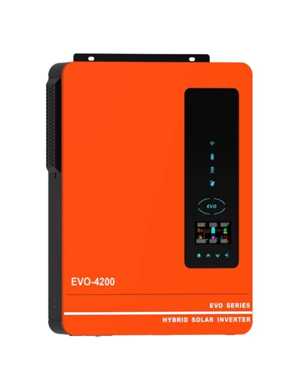 Гибридный инвертор SCI-EVO-4200 — это устройство, предназначенное для управления и преобразования энергии в гибридных энергетических системах, объединяющих солнечные панели, аккумуляторные батареи и сеть электроснабжения. Основные характеристики и особенности инвертора включают: